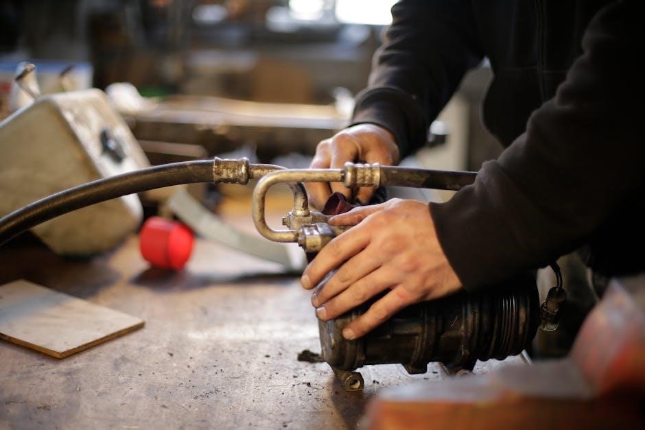 Air leaks diminish compressor efficiency. Begin by listening for hissing sounds around fittings‚ hoses‚ and the tank. Apply a soapy water solution to suspected areas; bubbles indicate leaks. Inspect the drain valve and pressure switch. Tighten connections or replace worn parts like hoses and seals. A persistent leak may require professional attention.
